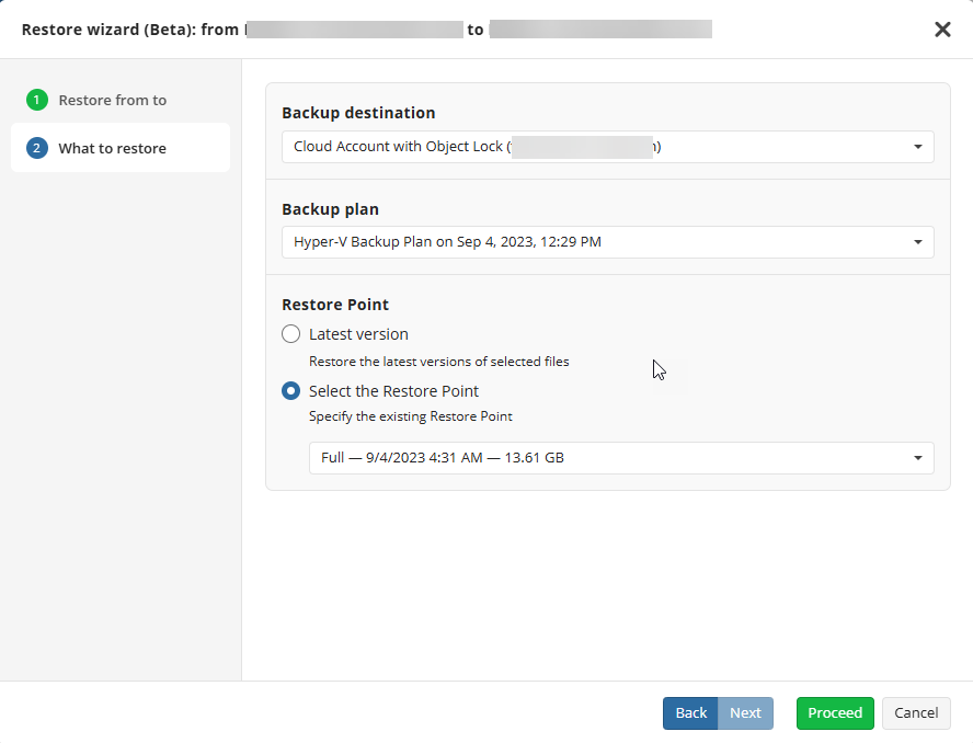 It guides you through the process step by step — from choosing a backup to selecting a restore point and destination — all in one place.